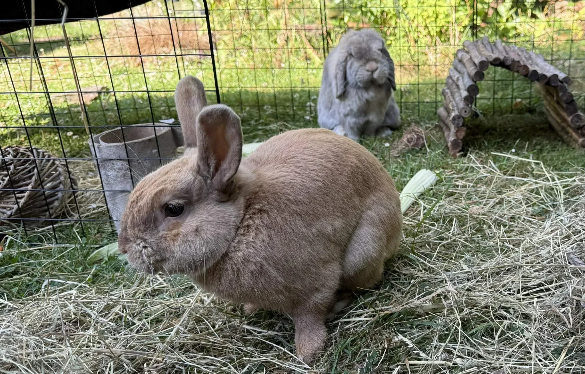 Louie is a 20-month-old biscuit-coloured rabbit with a gentle and sociable nature. He is the more confident of the two and enjoys being involved in his surroundings.
