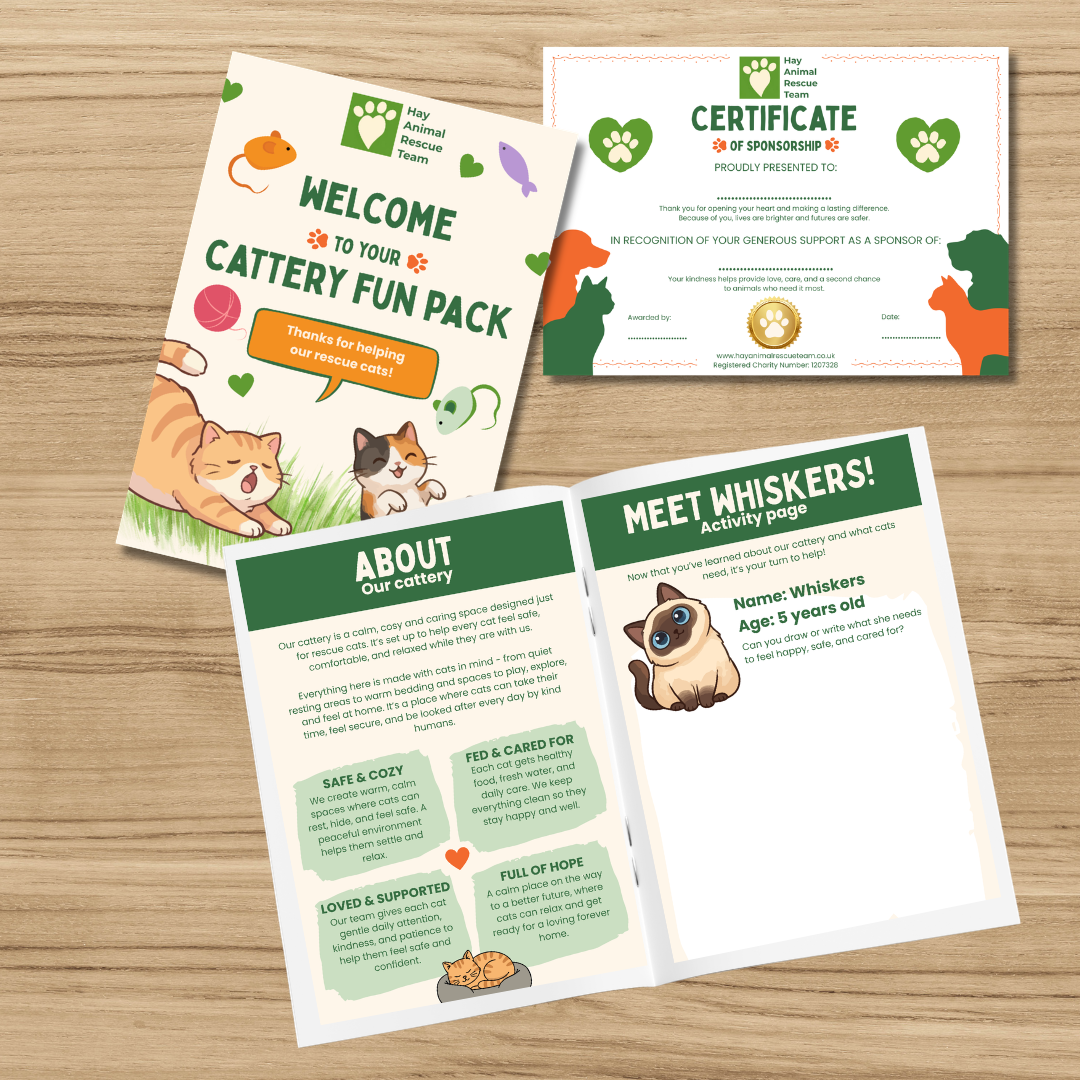 Our exclusive Cattery Fun Pack with information about our cattery and fun activities