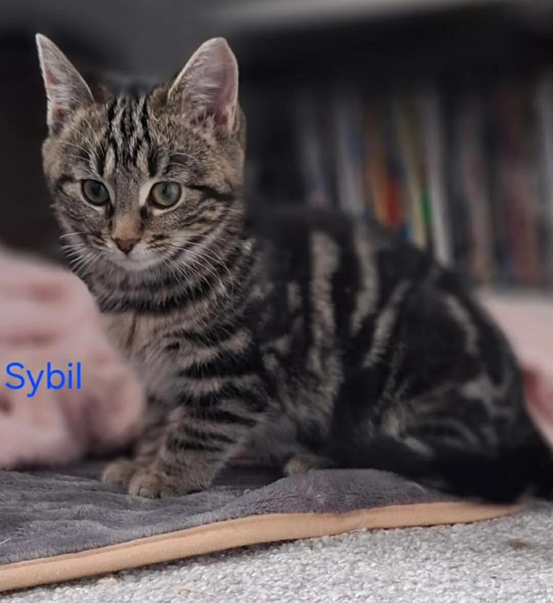 Meet Sybil and Elsie — two beautiful, bonded tabby sisters, around fourteen weeks old, who are ready to bring double the joy into the right home.