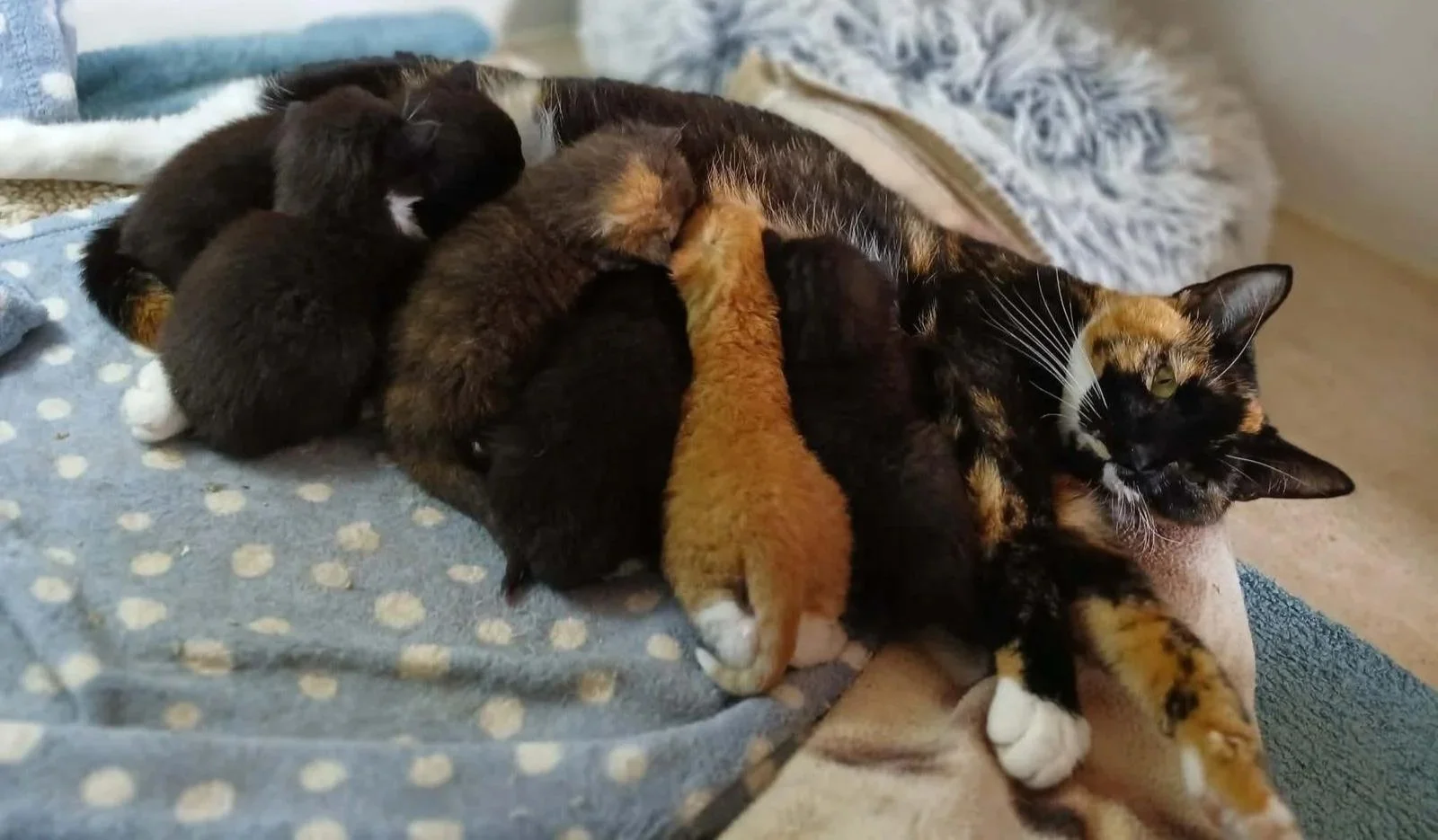 Shortly after arriving in care, she gave birth to six kittens – all of whom are now safe and being cared for.